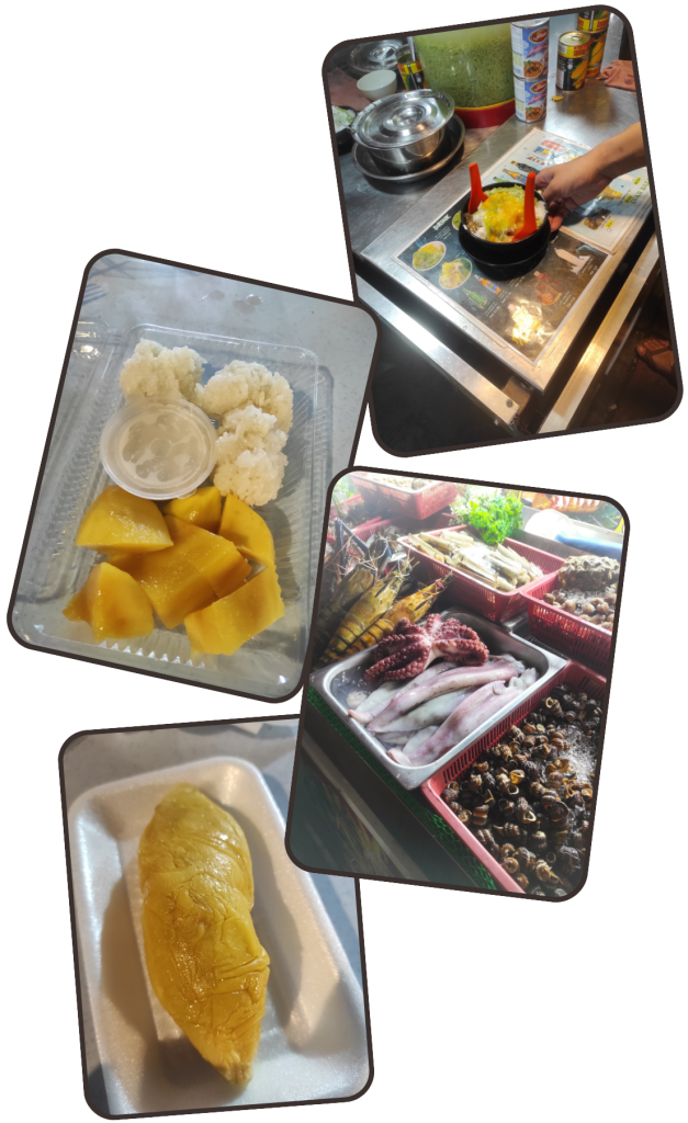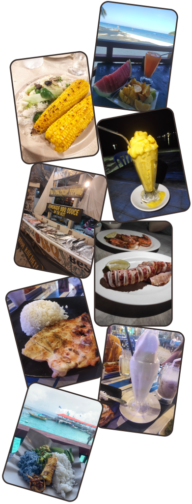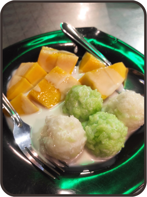 En muchos de los chiringuitos y hoteles preparan unos espectaculares Milkshakes, que son una copa de helado enorme obtenida a partir de fruta fresca y hielo limados en una especia de lijadora. Obtenida la pieza de hielo y fruta le añaden leche fresca. 100% irresistibles. SI tenéis la opción de probar el de coco obtenido de las palmeras de la playa, no la desaprovechéis. En algunos restaurantes de la Long Beach de la isla Kecil, también podréis encontrar el típico postre indonesio llamado Khao Niao Ma. Aunque en la isla lo llaman de otra manera. Pero al final se trata de lo mismo, arroz glutinoso (No lleva gluten) con leche de coco y mango.