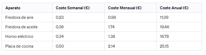 Comparativa de Costes Energéticos Entre Electrodomésticos 2023