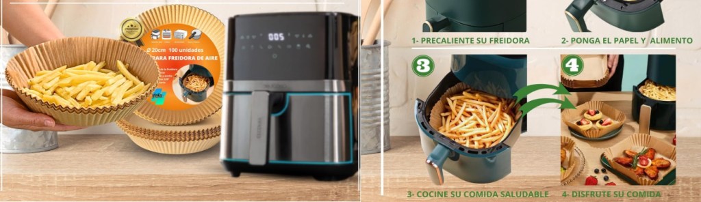 Como la basa de silicona, las de papel, también son una gran opción para mantener limpio el cestillo de la freidora, pero es importante tener en cuenta que pueden afectar la circulación del aire. Aun así, yo soy un fiel consumidor de este producto tan útil y económico.