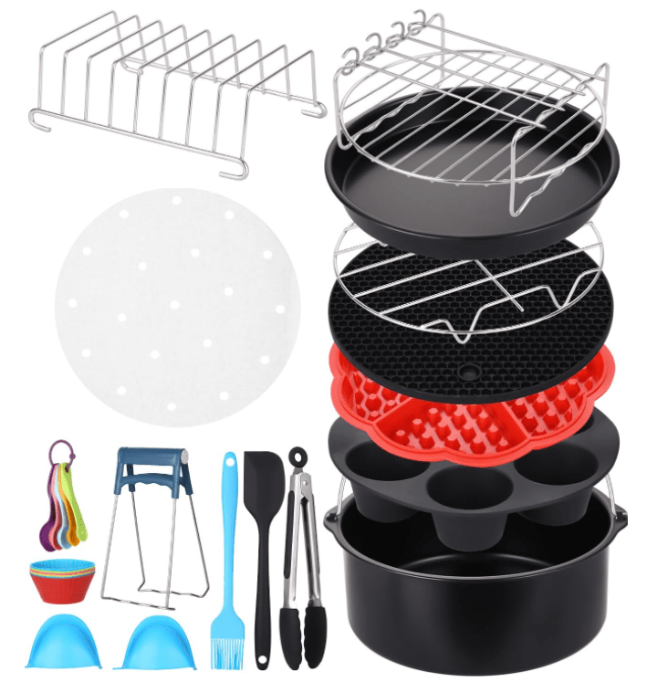 Si deseas un conjunto completo de accesorios para tu freidora de aire, considera el pack de accesorios Cosori para freidora sin aceite 5.5L. Este pack ideal para innovar en este 2024 incluye múltiples elementos útiles con mejor oferta que comprarlos al separado.